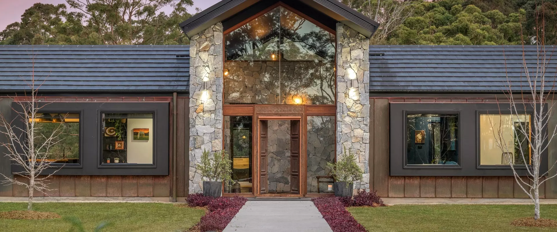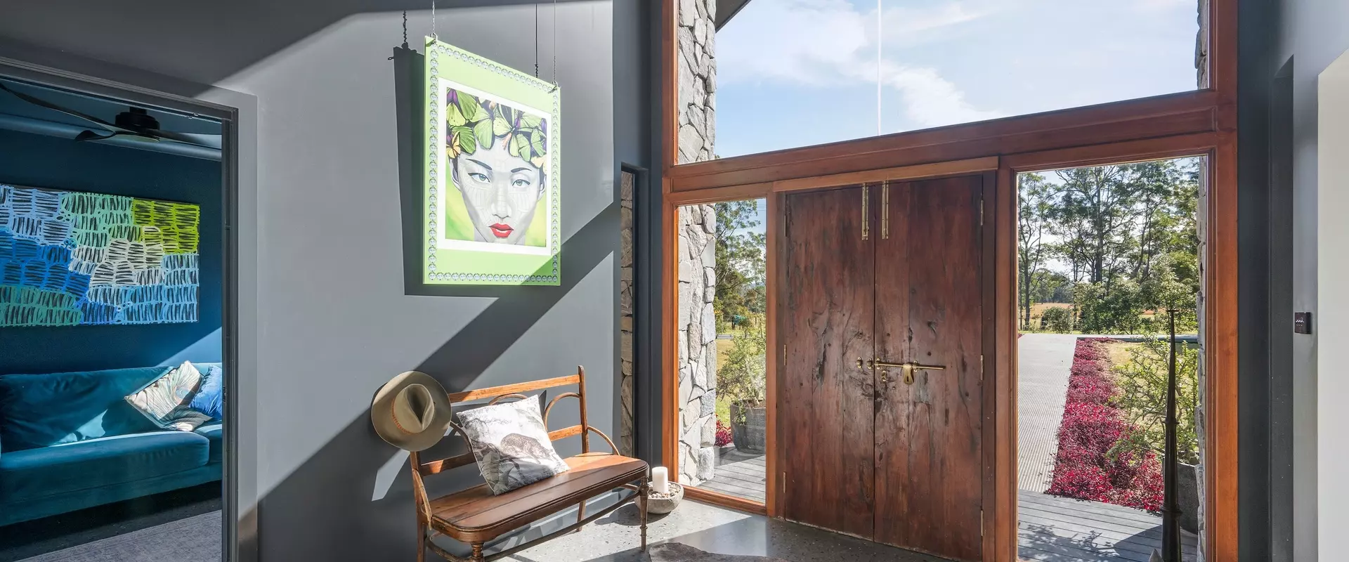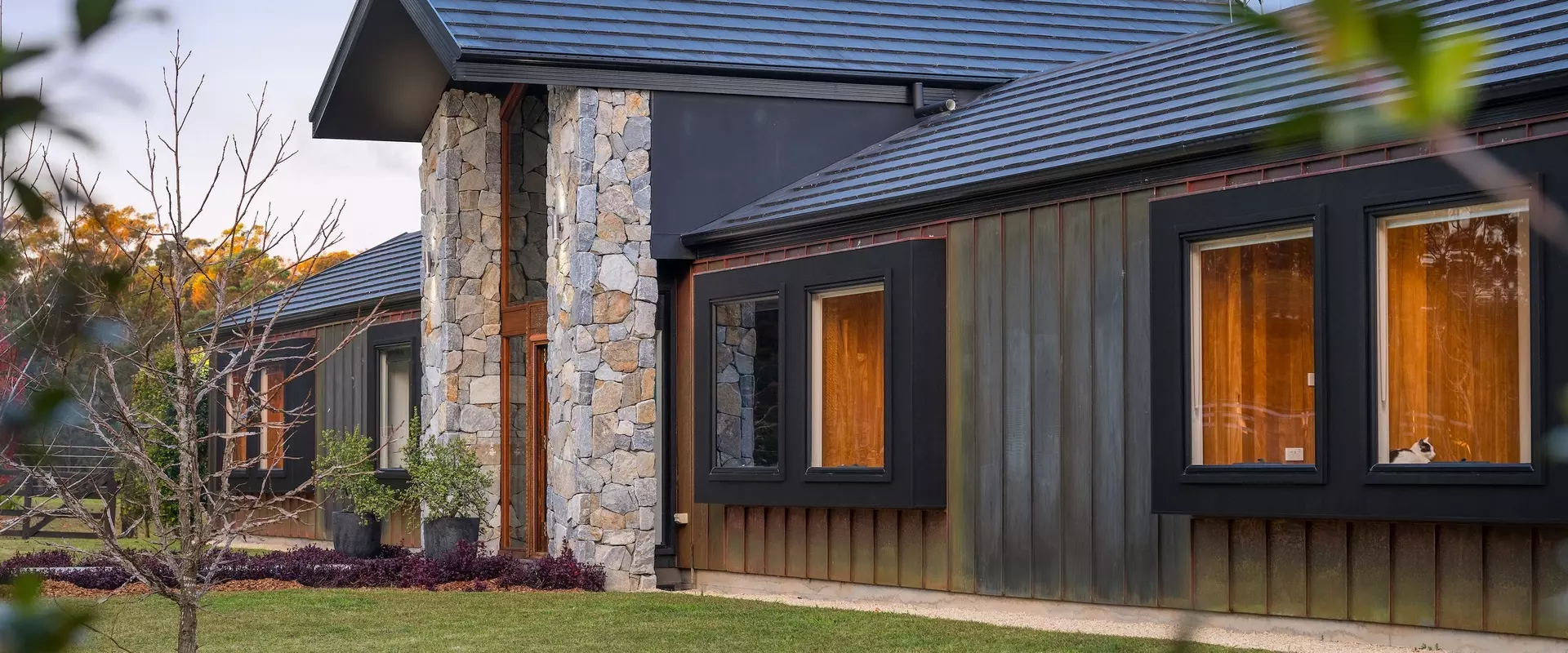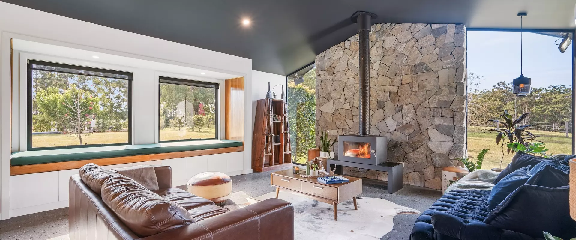 Positioned discreetly behind secure electric gates, the property enjoys a picturesque approach framed by the bushland and dramatic views towards Bago Bluff. Resting lightly against the beauty of this rural backdrop, a resolved exterior sets the tone for a home conceived with intent.