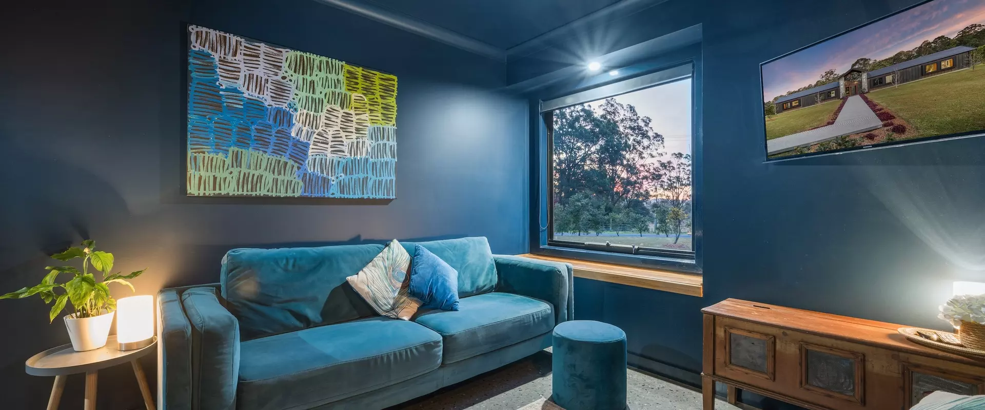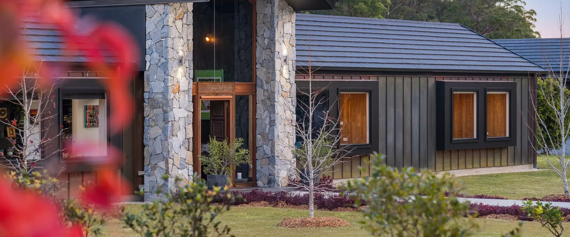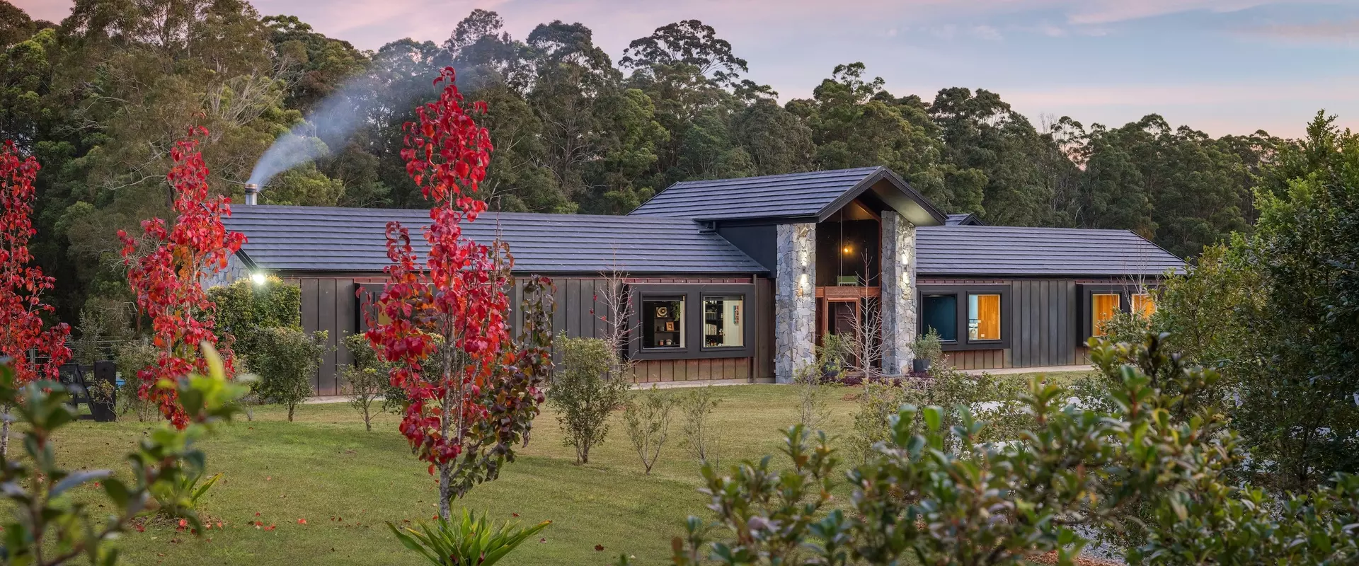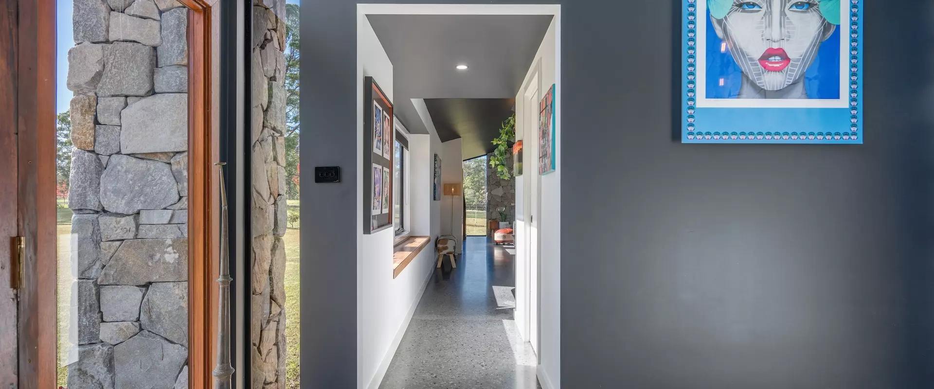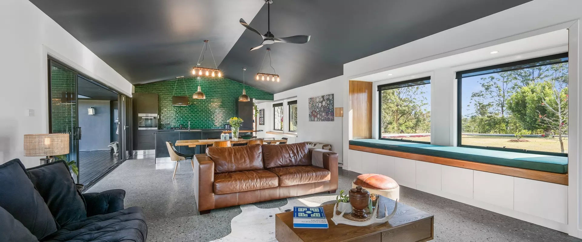 Positioned discreetly behind secure electric gates, the property enjoys a picturesque approach framed by the bushland and dramatic views towards Bago Bluff. Resting lightly against the beauty of this rural backdrop, a resolved exterior sets the tone for a home conceived with intent.