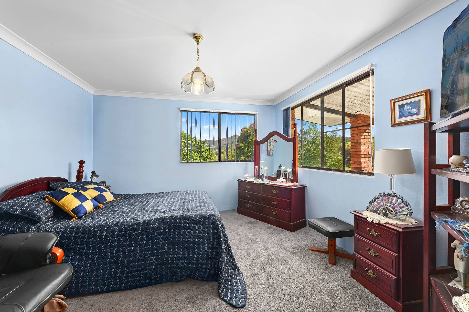 Built in 1982, constructed in full brick and comprising of 4 bedrooms, spacious lounge and formal dining, 2 bathrooms and all-round verandahs. Set in a commanding position overlooking the property.