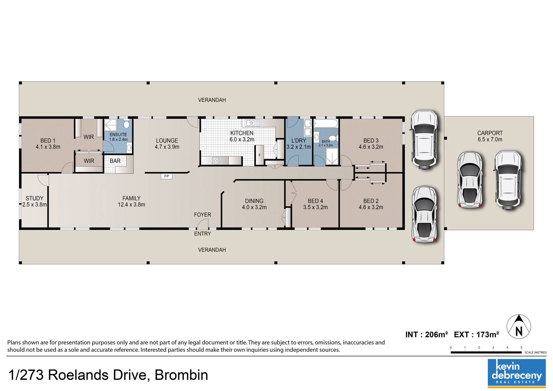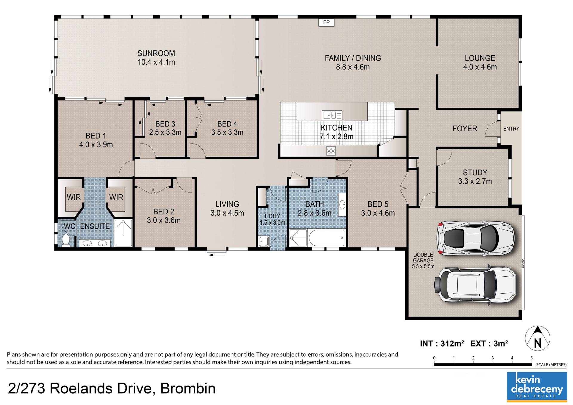 Built in 2011, brick veneer with iron roof. 5 bedrooms, study, large living zones, 2 bathrooms, fully ducted air-conditioning and internal access from double garage.