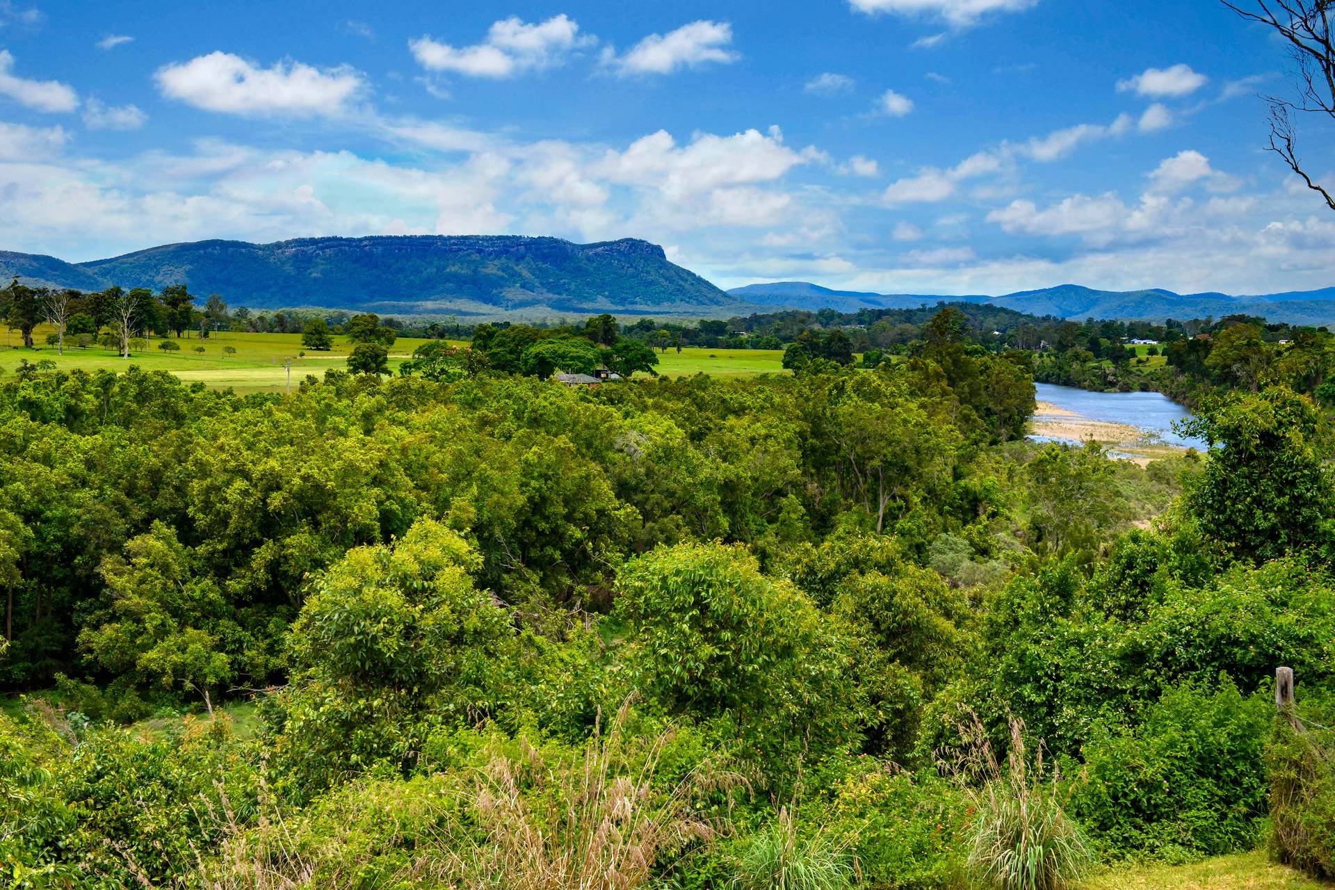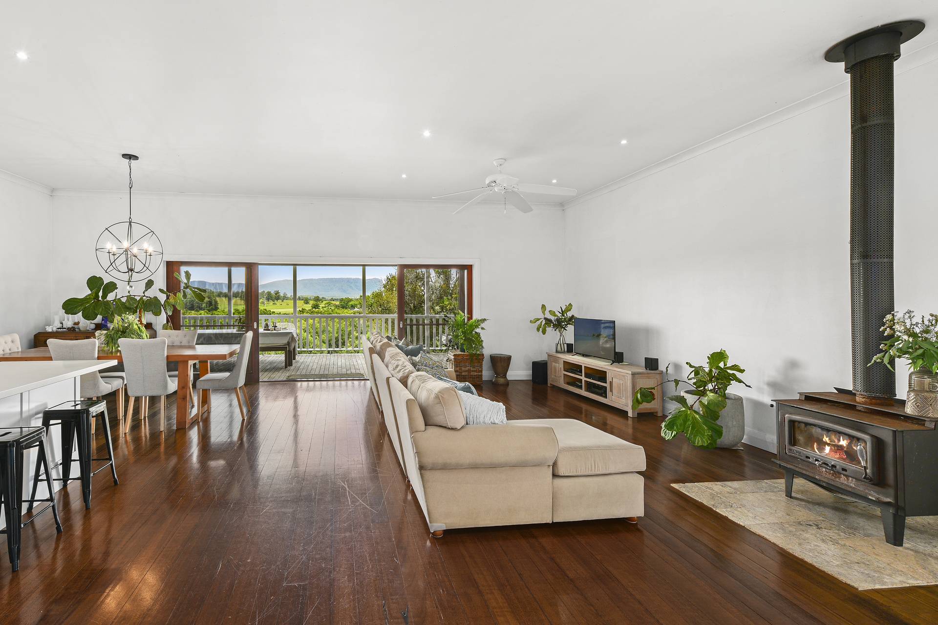 A seamless indoor/outdoor connection is facilitated by timber stacking doors which open to a large covered deck & wrap-around verandah. Nestled amongst the natural beauty of nearby farmland, its elevated position delivers spectacular panoramas to the river & mountain ranges beyond.