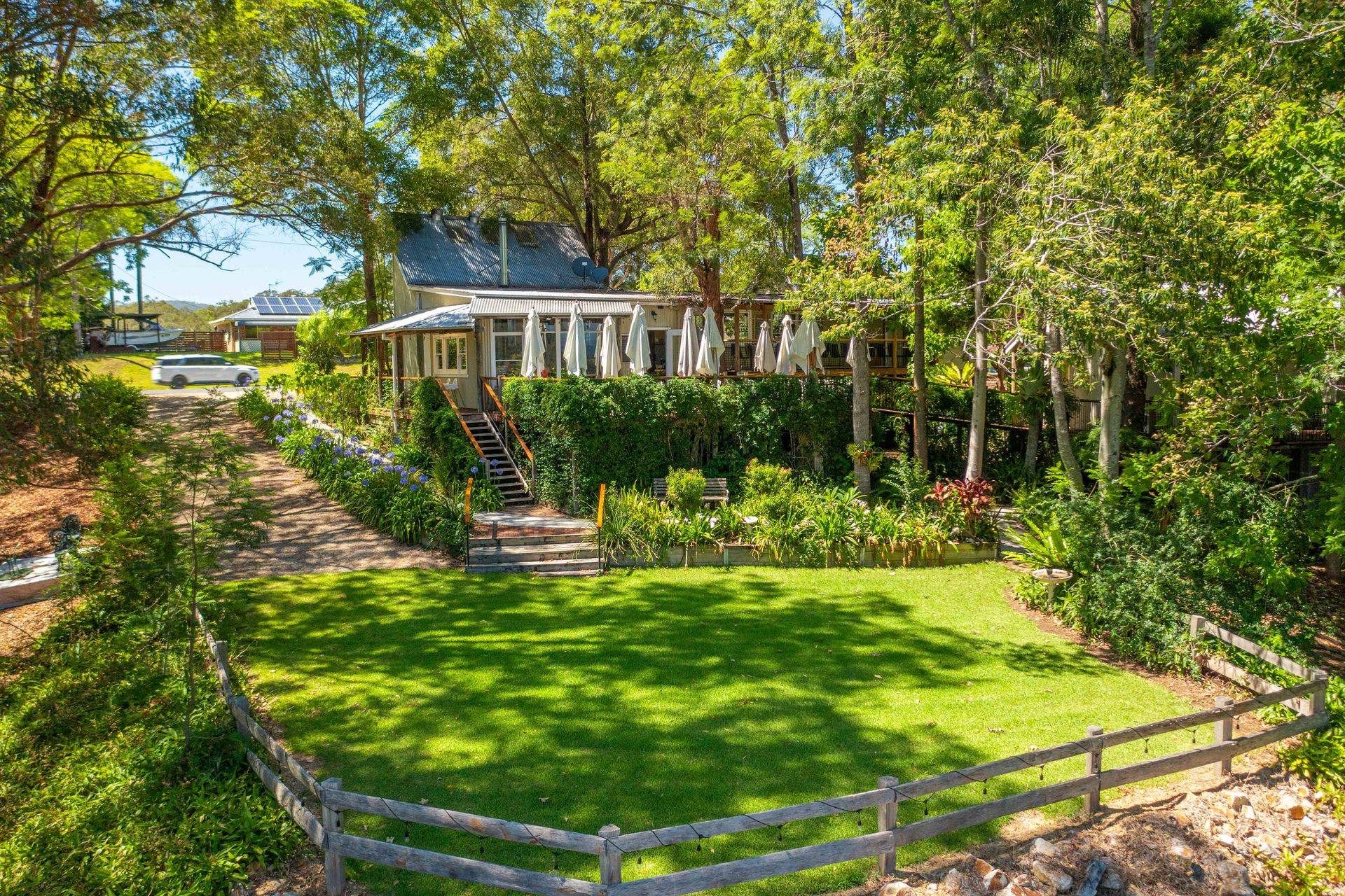 The acreage includes a small citrus grove and fertile flats, perfect for those with a passion for micro-farming and sustainability, offering scope to create a paddock-to-plate experience for patrons. Additional features include an 18-megalitre water licence, tractor and slasher.