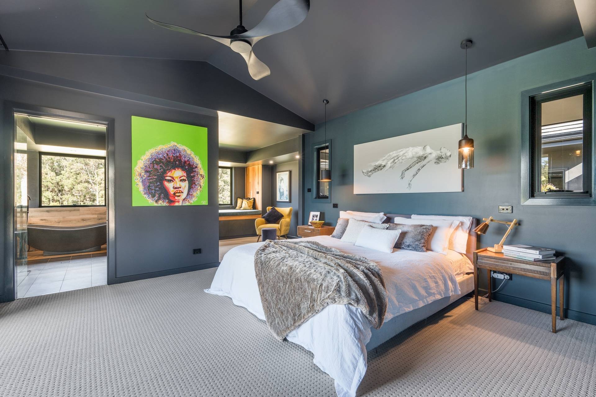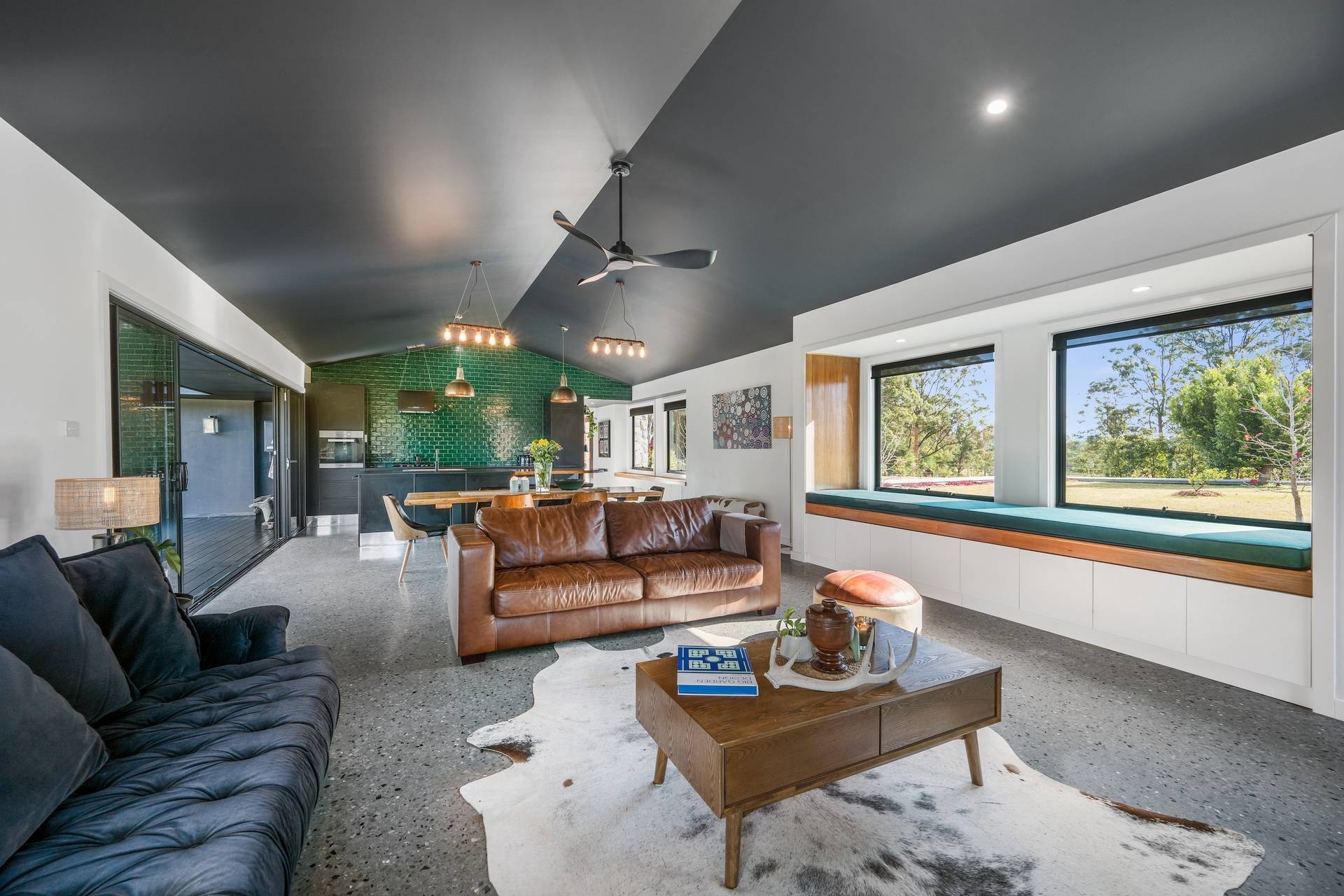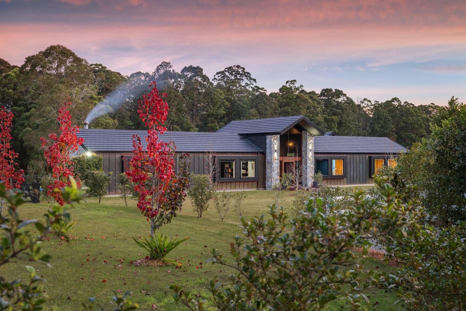 Positioned discreetly behind secure electric gates, the property enjoys a picturesque approach framed by the bushland and dramatic views towards Bago Bluff. Resting lightly against the beauty of this rural backdrop, a resolved exterior sets the tone for a home conceived with intent.