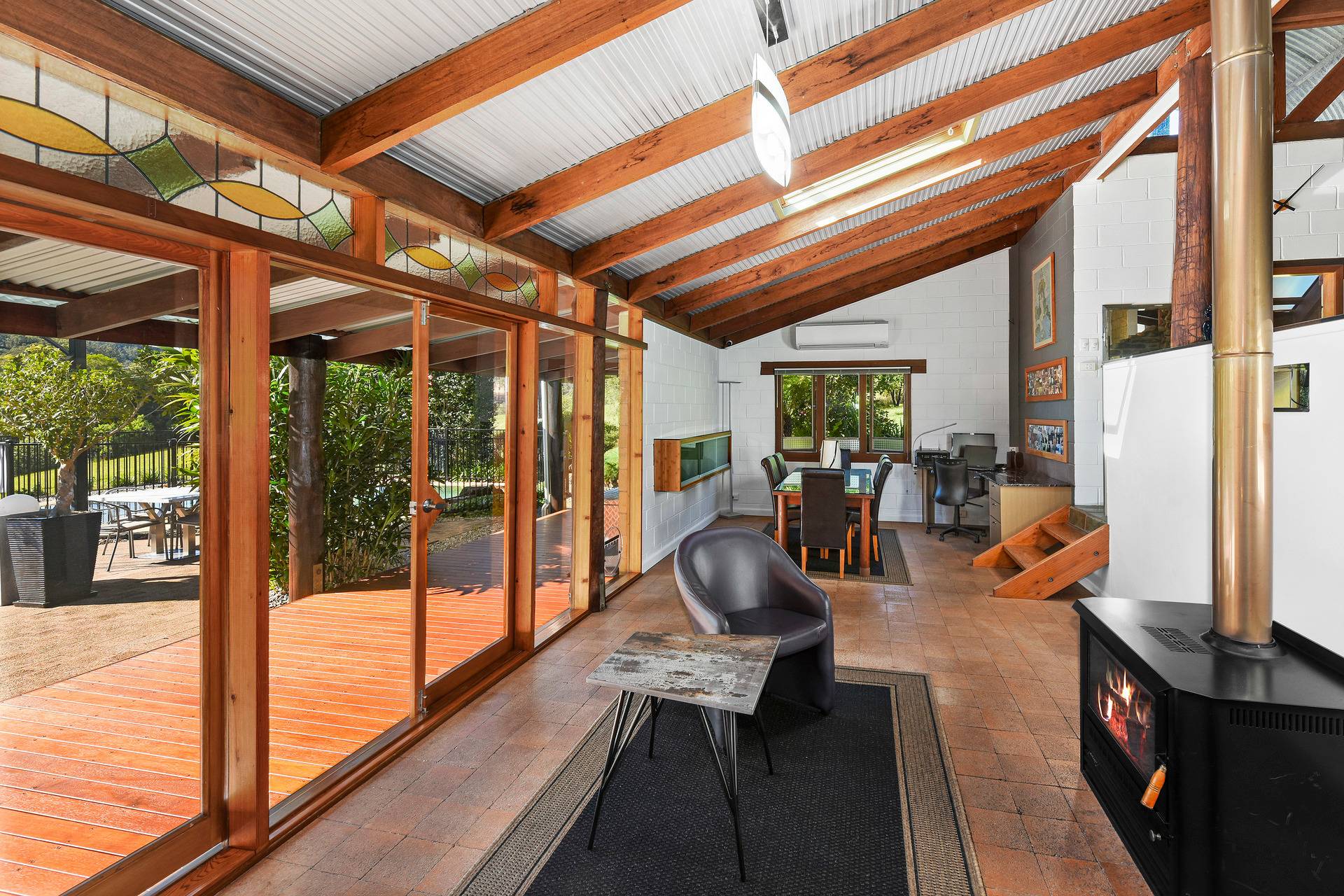 Other highlights include timber windows, vaulted ceilings, stained glass and skylights throughout, as well as tanks for rainwater harvesting, 2.2kW solar system and septic. Domestic water supply is sourced from an artesian spring which produces approximately 4000 litres per hour.